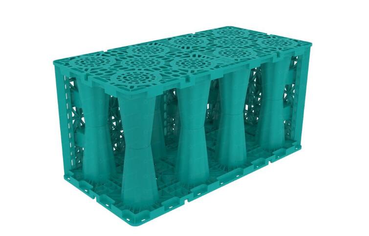 (1)貯水率高:即雨水模塊擁有95%的貯水空隙率,及超過6噸的抗壓強度。