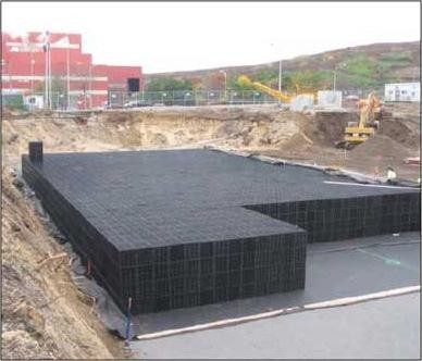 3、蓄水池:目前使用較多的是PP雨水收集模塊,一般深埋地下,不會破壞周邊環(huán)境的美觀.其具有施工簡單、造價成本低、使用壽命長、收集效率高、水質(zhì)保持時間長等特點.
